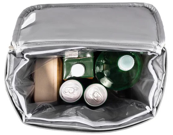 Zippered main compartment with heat-sealed, heavy-duty PEVA lining that prevents leaks and is removable for cleaning.